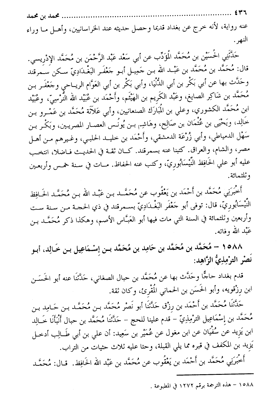 1588- مُحَمَّد بْن مُحَمَّد بْن حامد بْن مُحَمَّد بن إسماعيل بن خالد، أبو نصر الترمذي الزاهد [1] :