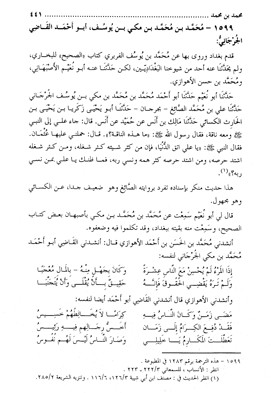 [1] 1599- هذه الترجمة برقم 1283 في المطبوعة.