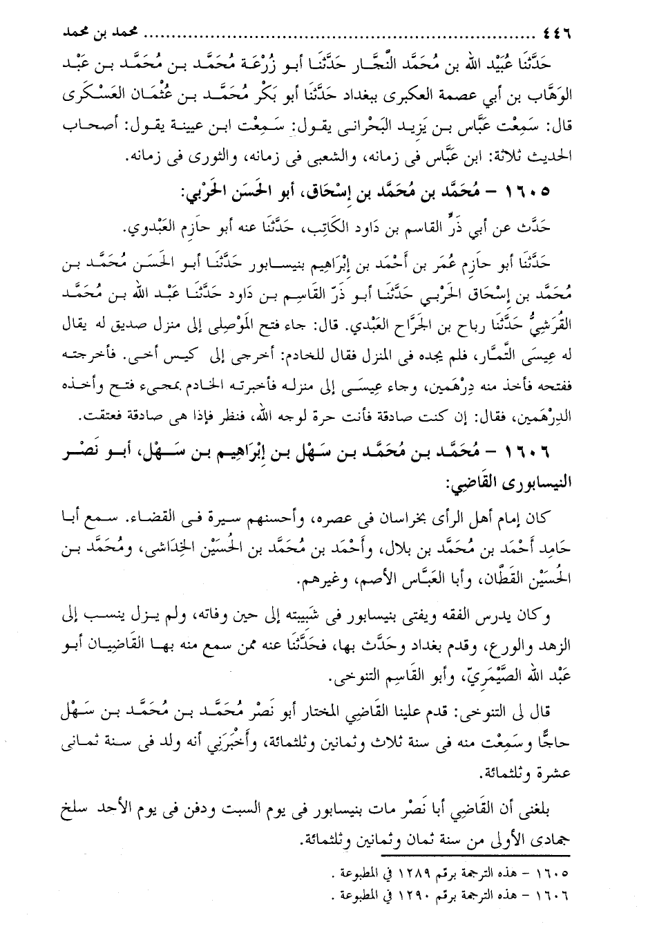1606- محمد بن محمد بن سهل بن إبراهيم بن سهل، أبو نصر النيسابوري القاضي [2] :