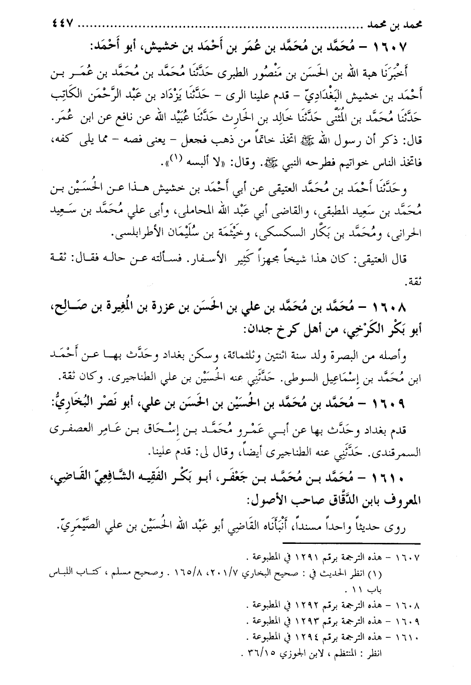 1607- مُحَمَّد بْن مُحَمَّد بْن عُمَر بْن أحمد بن خشيش، أبو أحمد [1] :