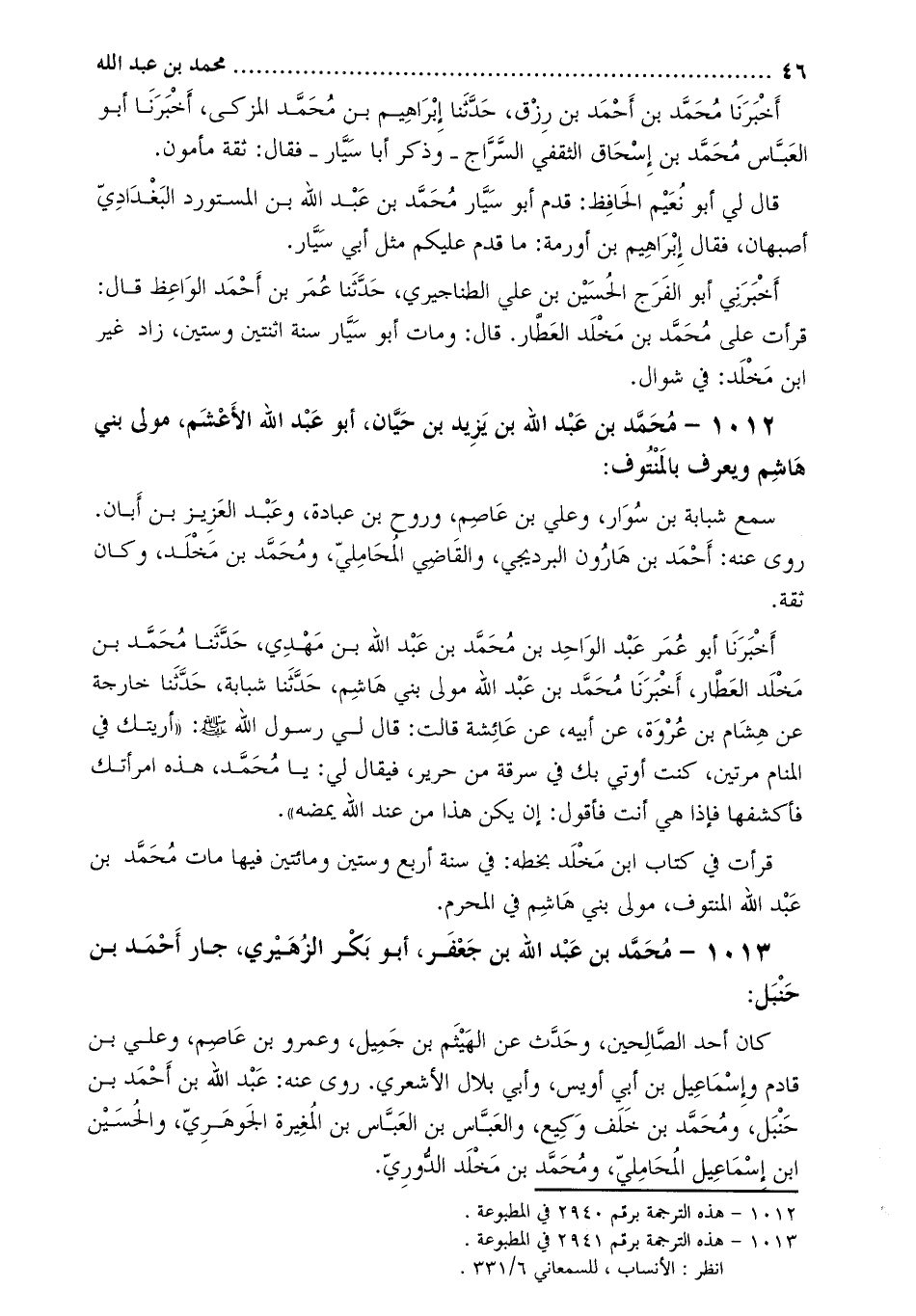 1012- محمد بن عبد الله بن يزيد بن حيان، أبو عبد الله الأعشم، مولى بني هاشم ويعرف بالمنتوف [1] :