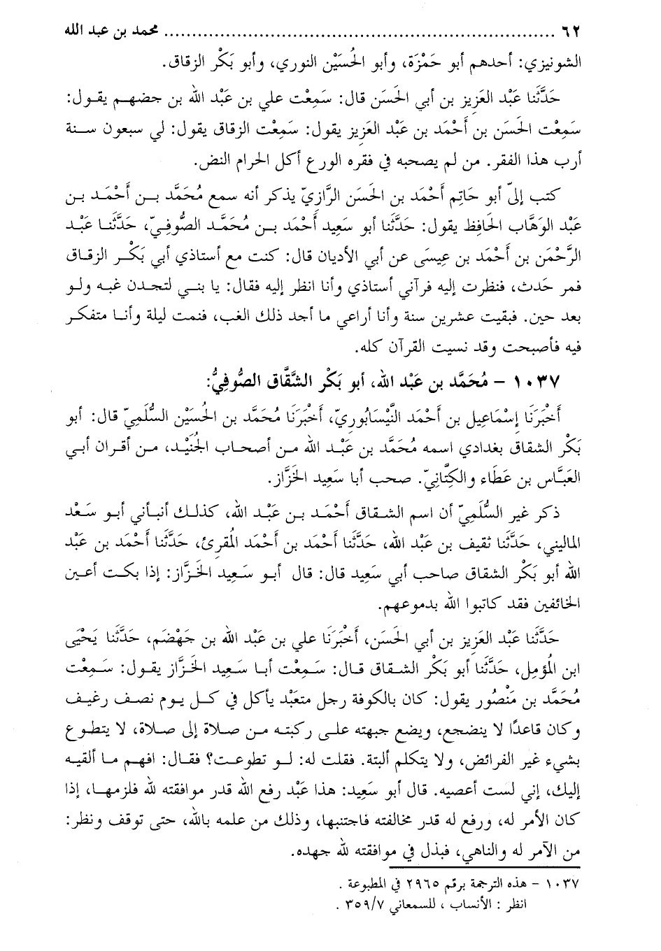 1037- محمد بن عبد الله، أبو بكر الشقاق الصوفي [1] :