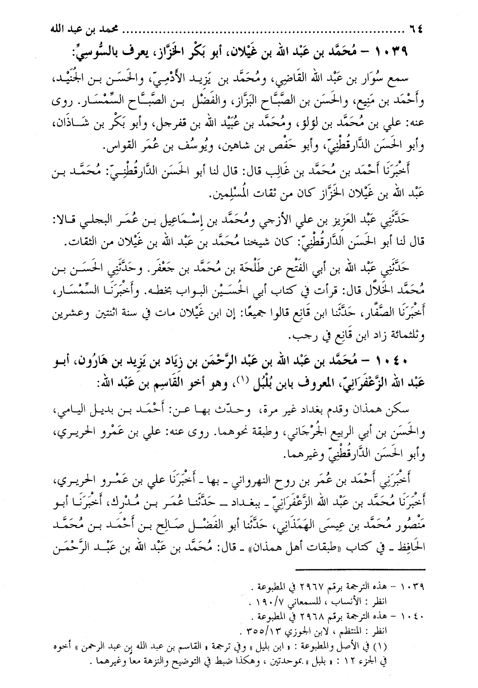 1039- مُحَمَّد بْن عَبْد اللَّه بْن غيلان، أبو بكر الخزاز، يعرف بالسوسي [1] :