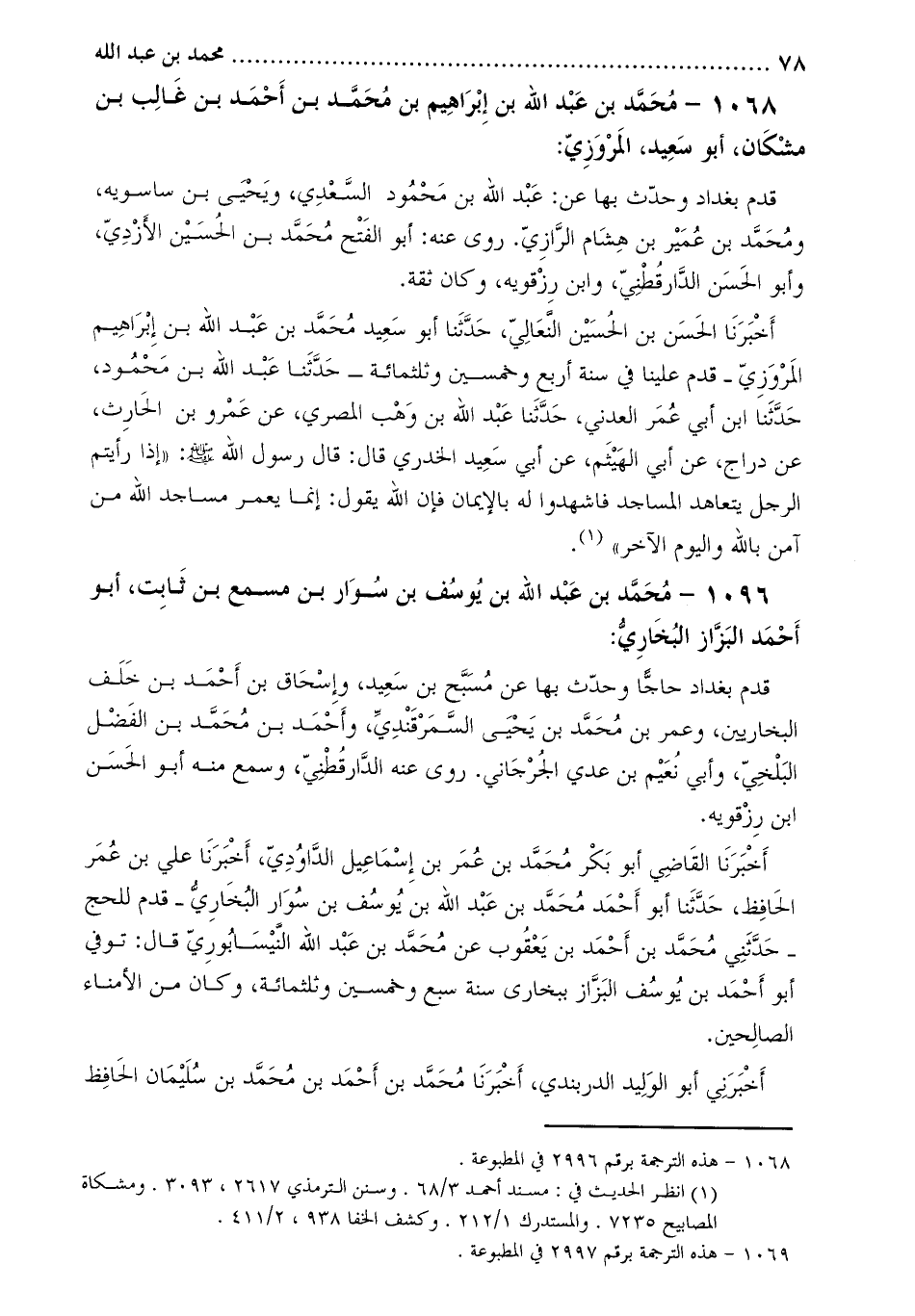 1068- مُحَمَّدِ بْنُ عَبْدِ اللَّهِ بْنِ إِبْرَاهِيمَ بْنِ مُحَمَّدِ بْنِ أحمد بن غالب بن مشكان، أبو سعيد، المروزي [1] :