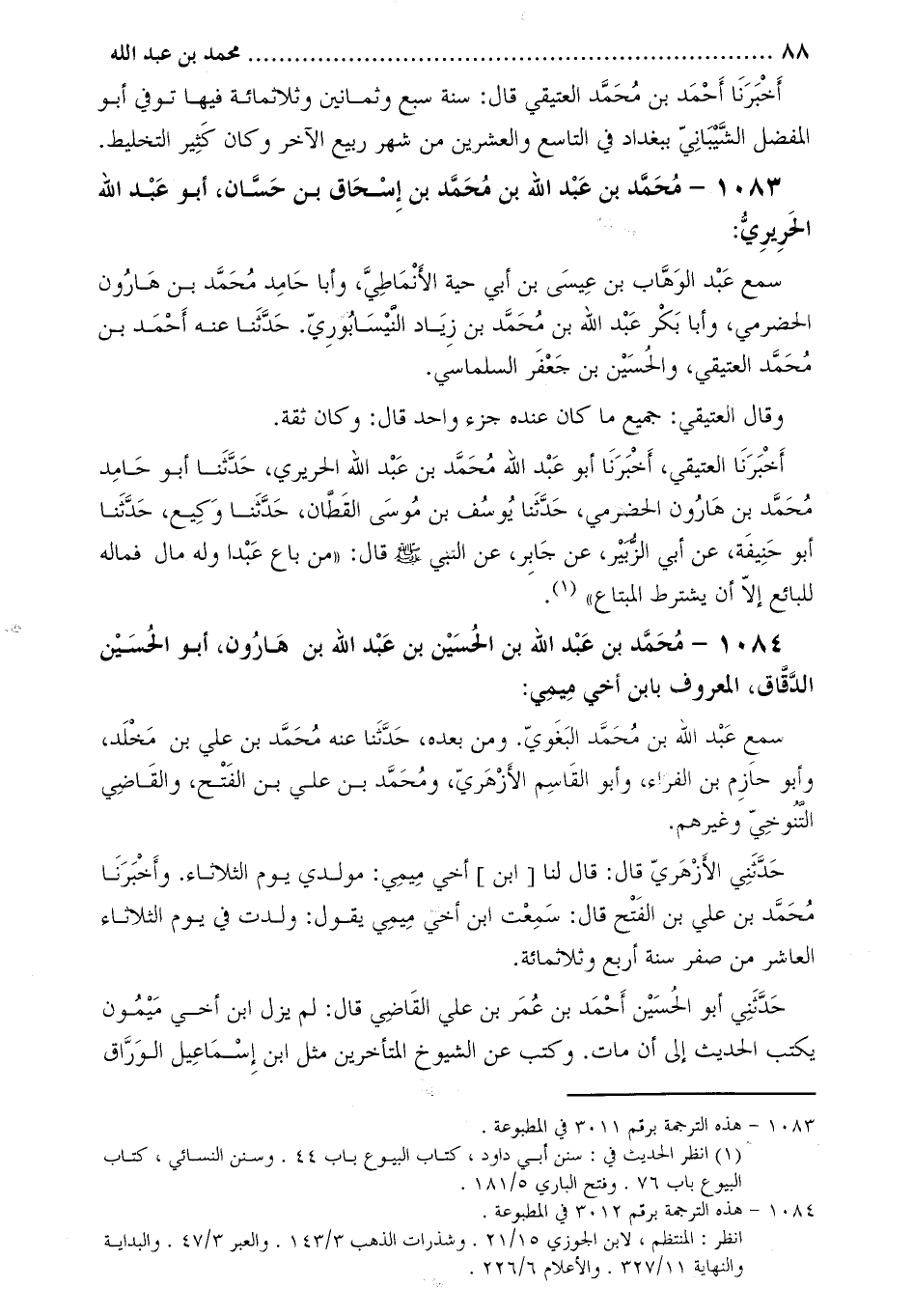 1083- مُحَمَّدُ بْنُ عَبْدِ اللَّهِ بْنِ مُحَمَّدِ بْنِ إسحاق بن حسان، أبو عبد الله الحريري [1] :