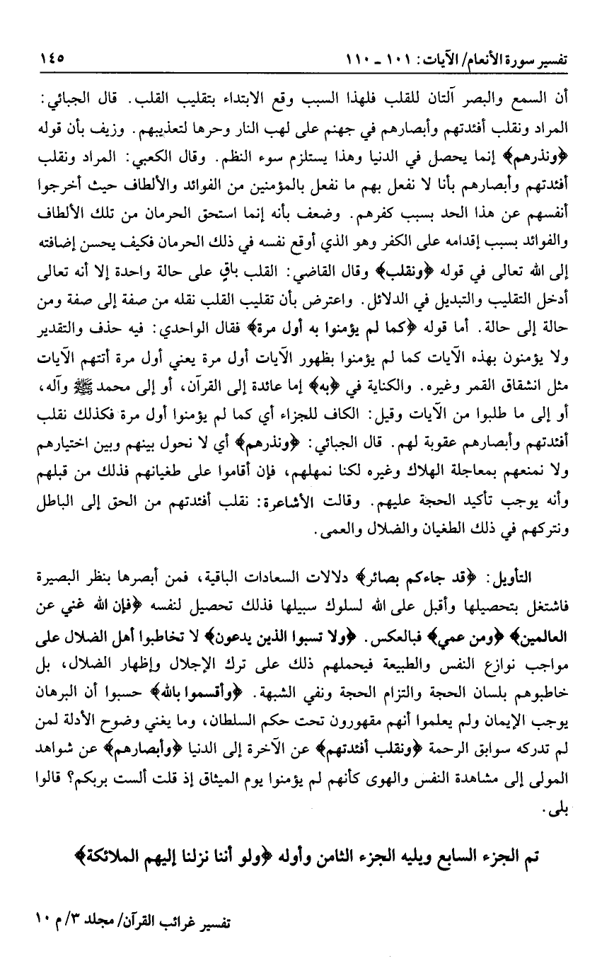 تم الجزء السابع ويليه الجزء الثامن وأوله وَلَوْ أَنَّنا نَزَّلْنا إِلَيْهِمُ الْمَلائِكَةَ