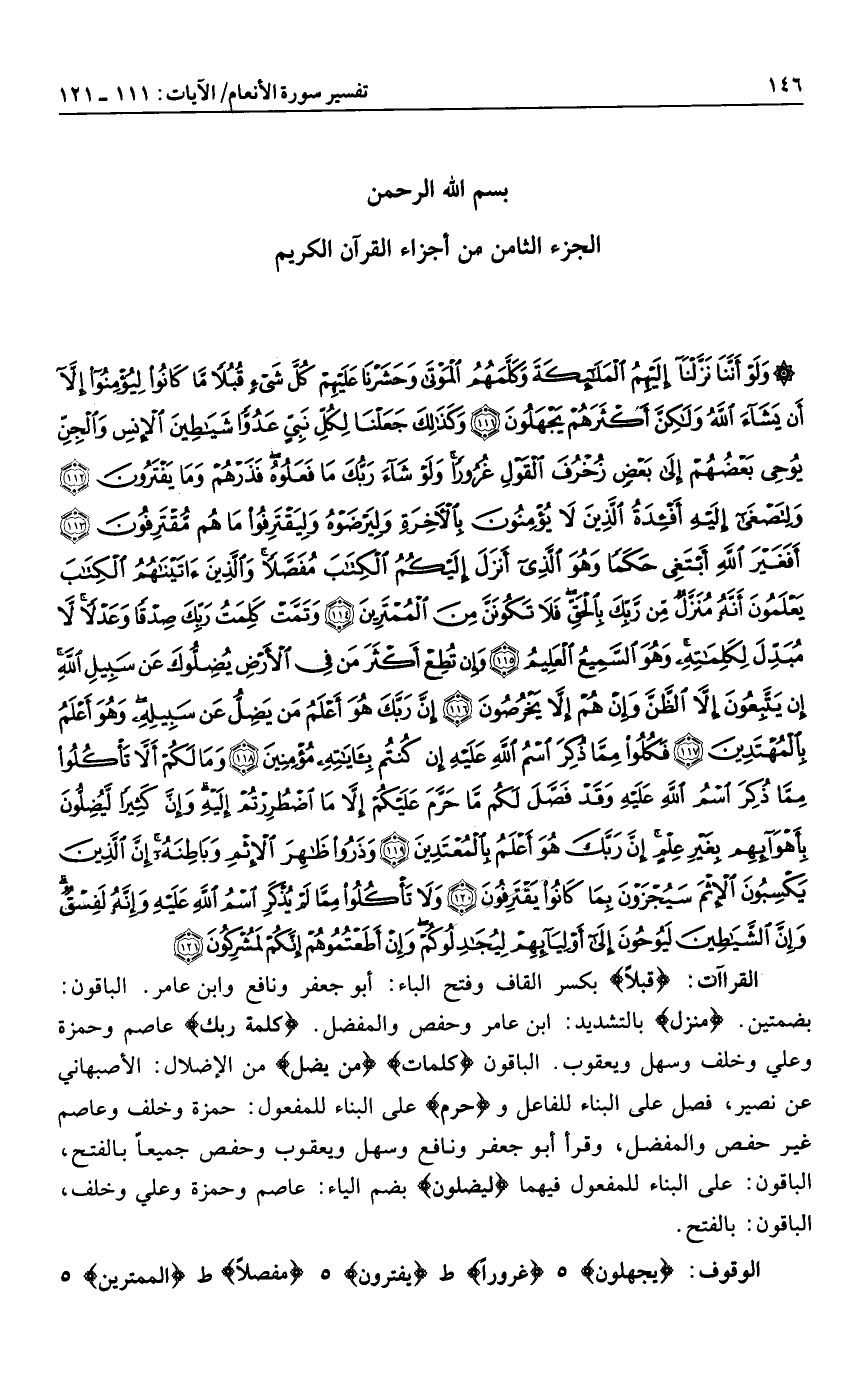 بسم الله الرحمن الجزء الثامن من أجزاء القرآن الكريم