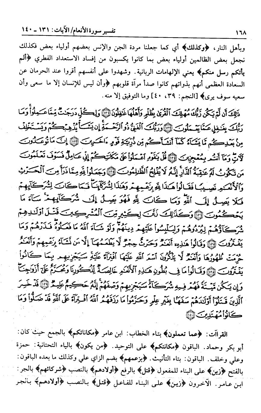 ابن عامر. الآخرون زَيَّنَ على البناء للفاعل قَتْلَ بالنصب أَوْلادِهِمْ بالجر