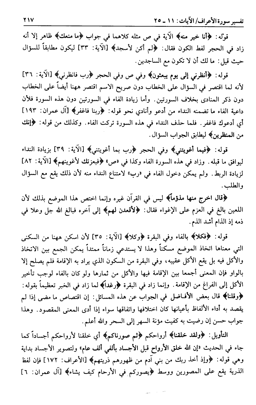 وَقُلْنا قال بعض الأفاضل في الجواب عن هذه المسائل: إن اقتصاص ما مضى إذا لم يقصد به أداء الألفاظ بأعيانها كان اختلافها واتفاقها سواء إذا أدى المعنى المقصود. وهذا جواب حسن إن رضيت به كفيت مؤنة السهر إلى السحر والله أعلم.