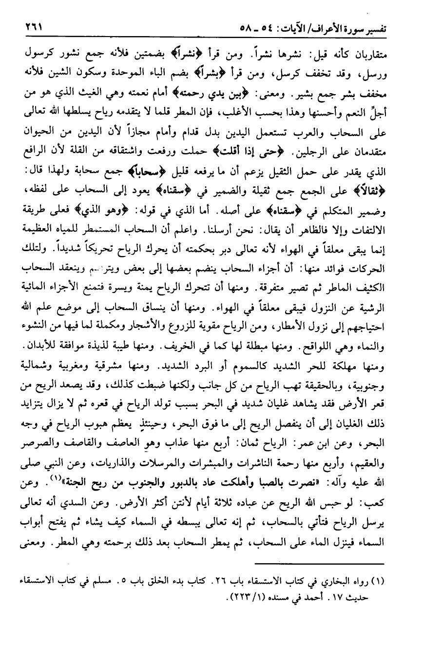 (1) رواه البخاري في كتاب الاستسقاء باب 26. كتاب بدء الخلق باب 5. مسلم في كتاب الاستسقاء حديث 17. أحمد في مسنده (1/ 223) .