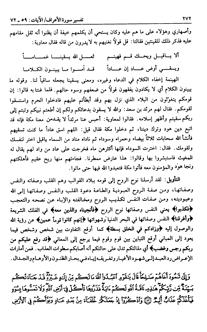 لقد أرسلنا نوح الروح إلى قومه ببلاد القوالب وهم القلب وصفاته والنفس وصفاتها، ومن صفة الروح العبودية والطاعة دعوة القلب والنفس وصفاتها إلى الله وعبوديته، ومن صفات النفس تكذيب الروح ومخالفته والإباء عن نصحه والتعجب فَكَذَّبُوهُ يعني النفس وصفاتها نوح الروح فَأَنْجَيْناهُ وَالَّذِينَ مَعَهُ في الفلك الشريعة وَأَغْرَقْنَا النفس وصفاتها في البحر الدنيا وشهواتها إِنَّهُمْ كانُوا قَوْماً عَمِينَ عن رؤية الله والوصول إليه وَزادَكُمْ فِي الْخَلْقِ بَصْطَةً كما أوقع التفاوت بين شخص وشخص فيما يعود إلى المباني أوقع التباين بين قوم وقوم فيما يرجع إلى المعاني قَدْ وَقَعَ عَلَيْكُمْ مِنْ رَبِّكُمْ رِجْسٌ وَغَضَبٌ أي مقالتكم تدل على حالتكم أنه أصابكم سطوات العذاب. فمن أمارات الإعراض رد العبد إلى شهود الأغيار وتغريقه إياه في بحار الظنون والأوهام والجدال.