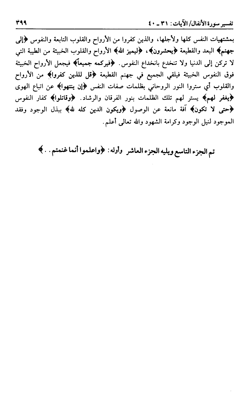 تم الجزء التاسع ويليه الجزء العاشر وأوله: وَاعْلَمُوا أَنَّما غَنِمْتُمْ..