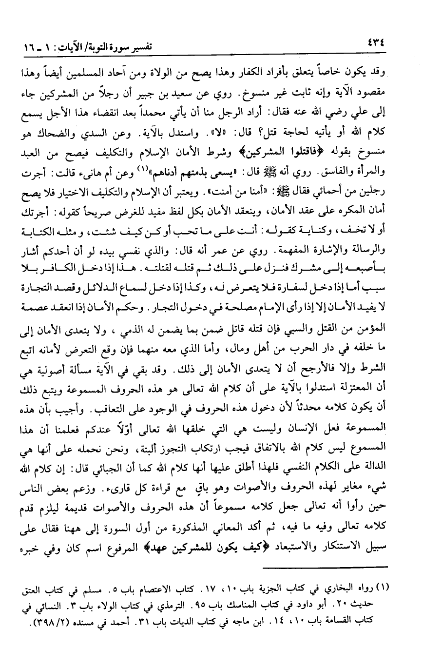(1) رواه البخاري في كتاب الجزية باب 10، 17. كتاب الاعتصام باب 5. مسلم في كتاب العتق حديث 20. أبو داود في كتاب المناسك باب 95. الترمذي في كتاب الولاء باب 3. النسائي في كتاب القسامة باب 10، 14. ابن ماجه في كتاب الديات باب 31. أحمد في مسنده (2/ 398) .