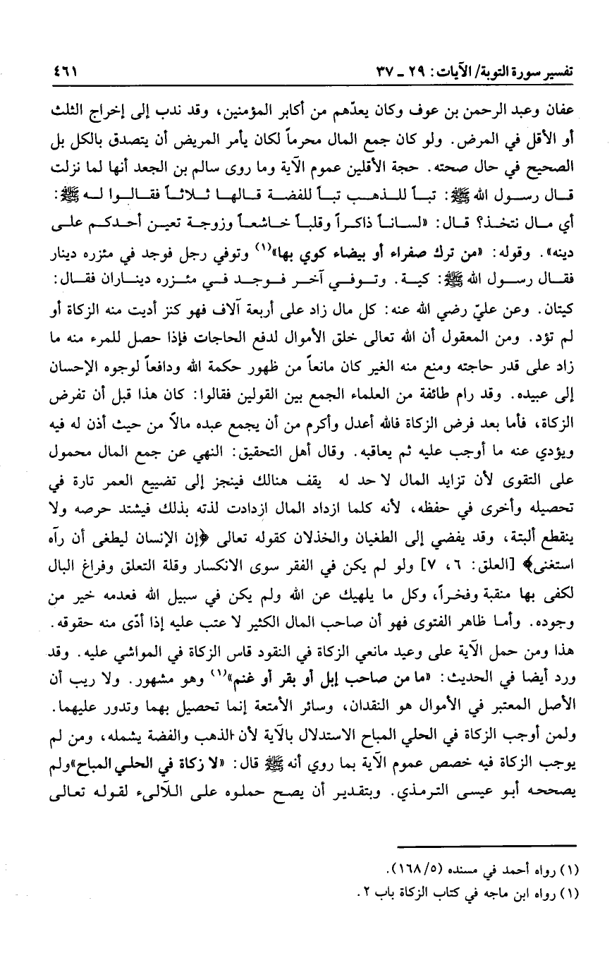 عفان وعبد الرحمن بن عوف وكان يعدّهم من أكابر المؤمنين، وقد ندب إلى إخراج الثلث أو الأقل في المرض.