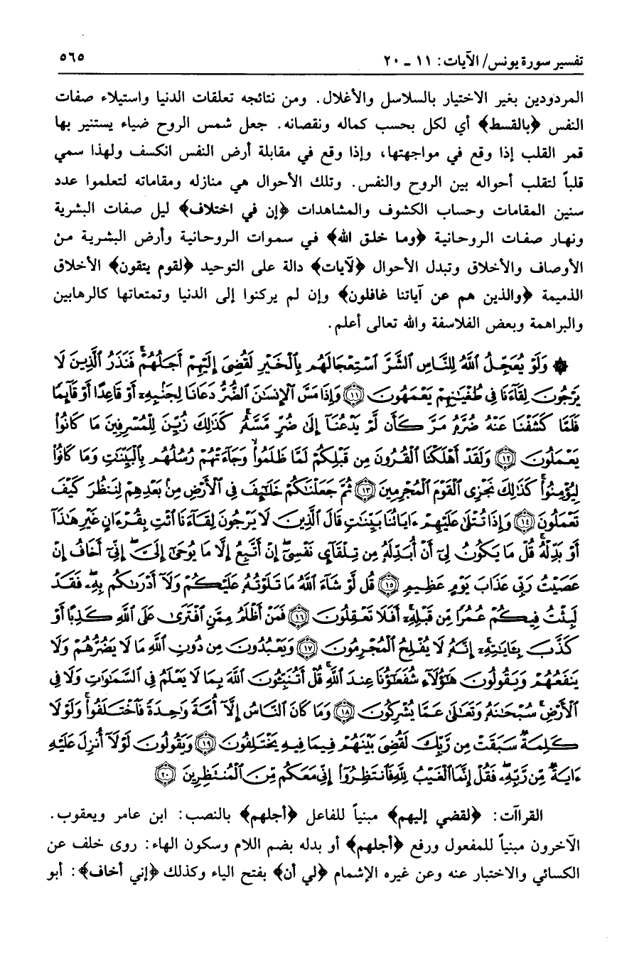 الآخرون مبنيا للمفعول ورفع أَجَلُهُمْ أو بدله بضم اللام وسكون الهاء: روى خلف عن الكسائي والاختبار عنه وعن غيره الإشمام لي أن بفتح الياء وكذلك إِنِّي أَخافُ: أبو
