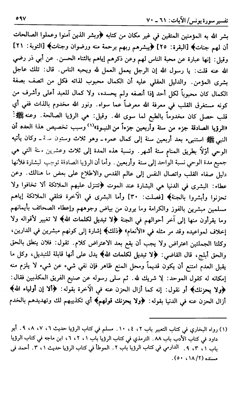 (1) رواه البخاري في كتاب التعبير باب 2، 4، 10. مسلم في كتاب الرؤيا حديث 6، 7، 8، 9. أبو داود في كتاب الأدب باب 88. الترمذي في كتاب الرؤيا باب 1، 2، 6، ابن ماجه في كتاب الرؤيا باب 1، 3، 9. الدارمي في كتاب الرؤيا باب 2. الموطأ في كتاب الرؤيا حديث 1، 3. أحمد فى مسنده (2/ 18، 50) . [.....]