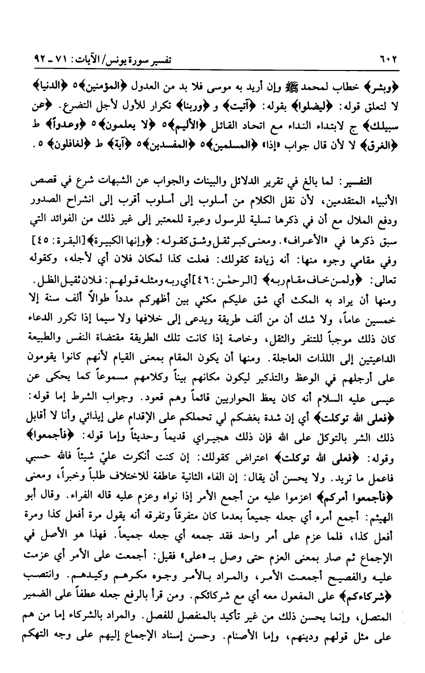 وَبَشِّرِ خطاب لمحمد صلّى الله عليه وسلم وإن أريد به موسى فلا بد من العدول الْمُؤْمِنِينَ هـ الدُّنْيا لا لتعلق قوله: لِيُضِلُّوا بقوله: آتَيْتَ ورَبَّنا تكرار للأول لأجل التضرع. عَنْ سَبِيلِكَ ج لابتداء النداء مع اتحاد القائل الْأَلِيمَ هـ لا يَعْلَمُونَ هـ وَعَدْواً ط الْغَرَقُ لا لأن قال جواب «إذا» الْمُسْلِمِينَ هـ الْمُفْسِدِينَ هـ آيَةً ط لَغافِلُونَ هـ.