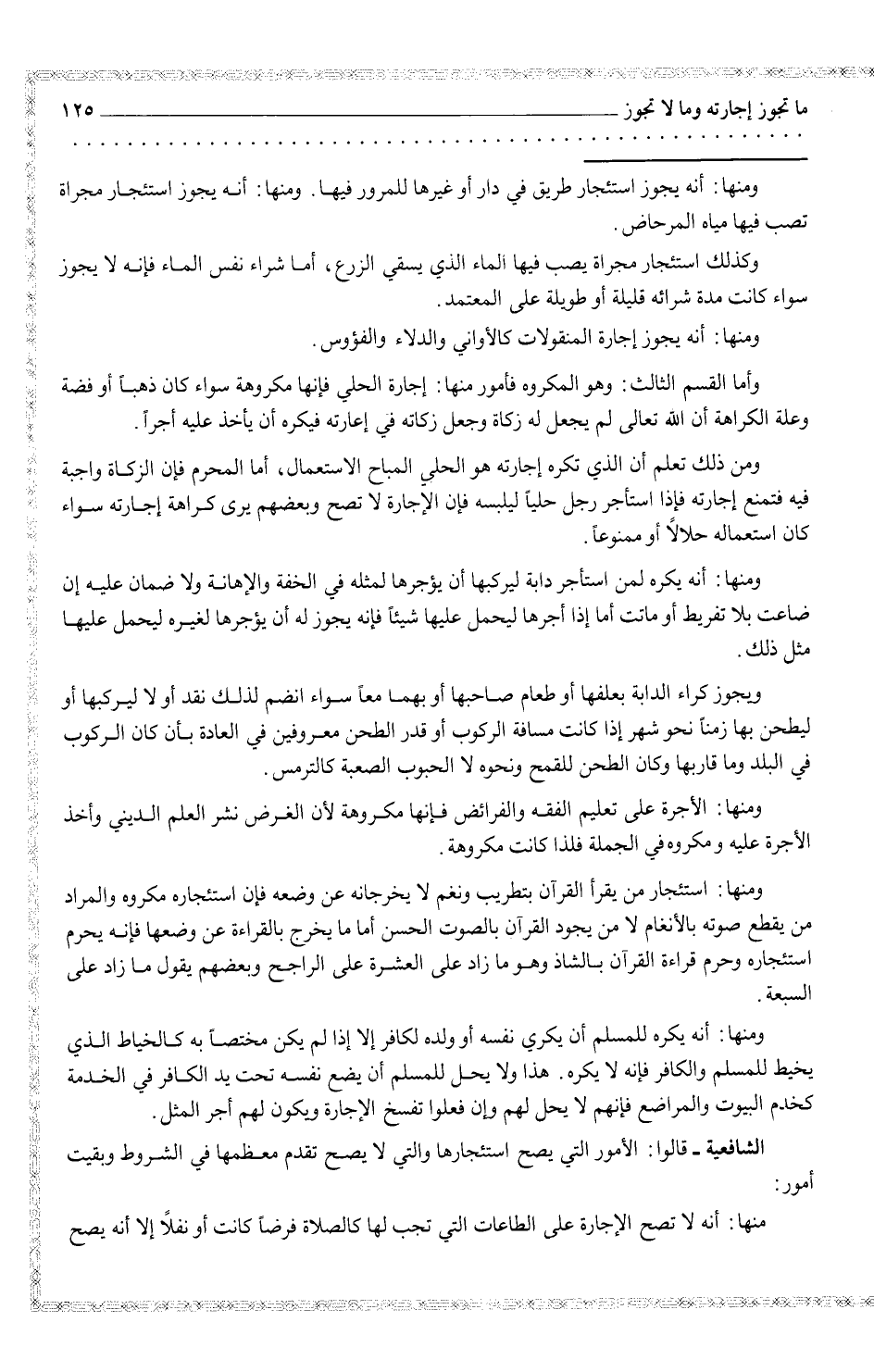 الشافعية - قالوا: الأمور التي يصح استئجارها والتي لا يصح تقدم معظمها في الشروط وبقيت أمور: