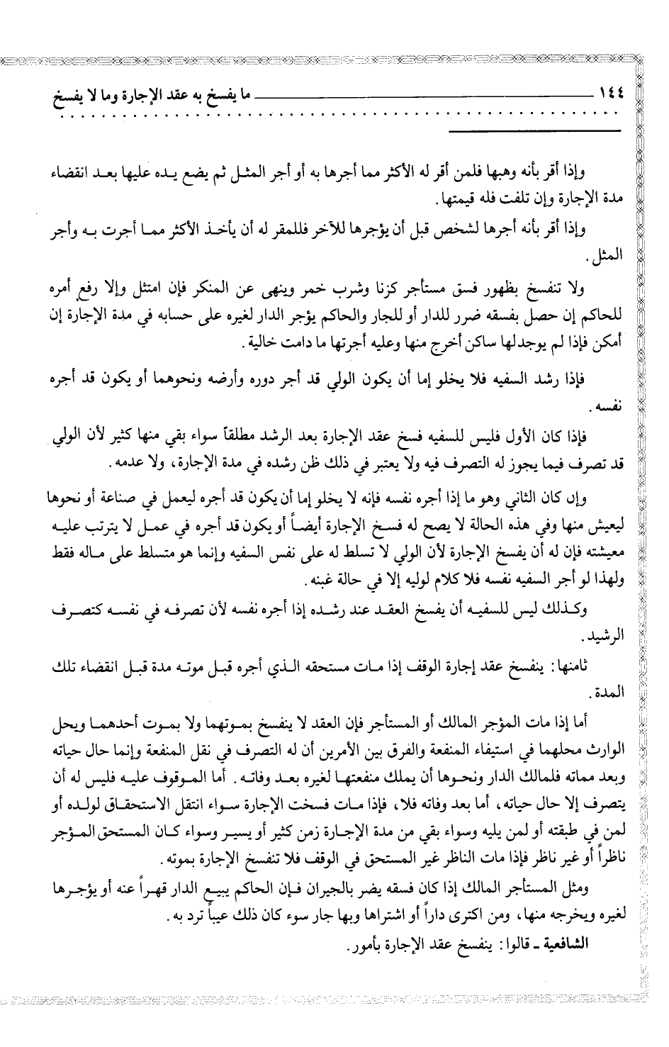 الشافعية - قالوا: ينفسخ عقد الإجارة بأمور.