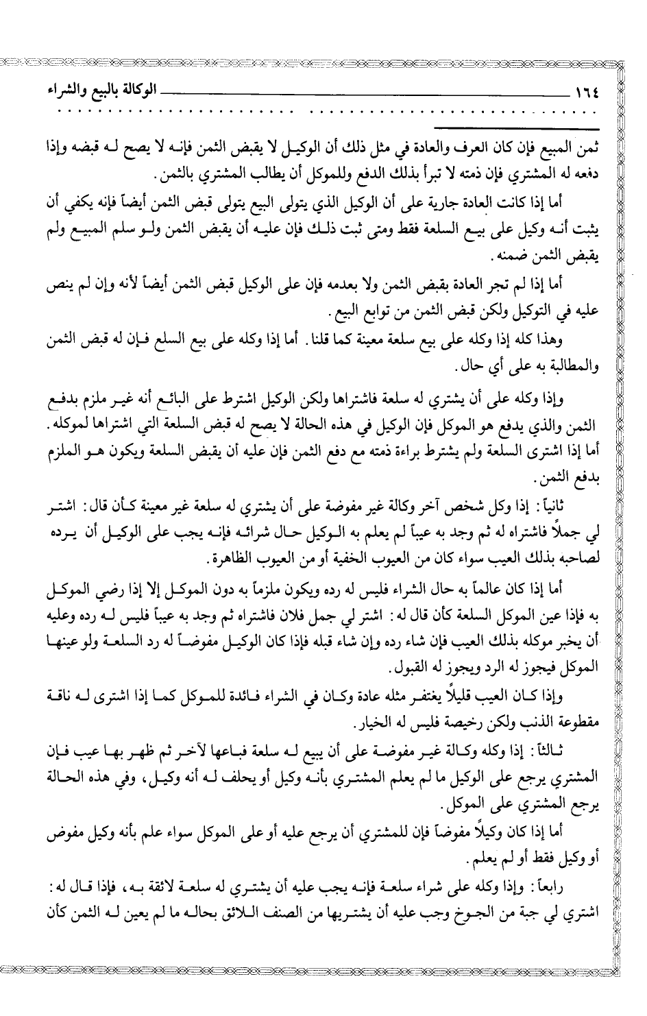 رابعاً: وإذا وكله على شراء سلعة فإنه يجب عليه أن يشتري له سلعة لائقة به، فإذا قال: اشتري لي جبة من الجوخ وجب عليه أن يشتريها من الصنف اللائق بحاله مالم يعين له الثمن كأن