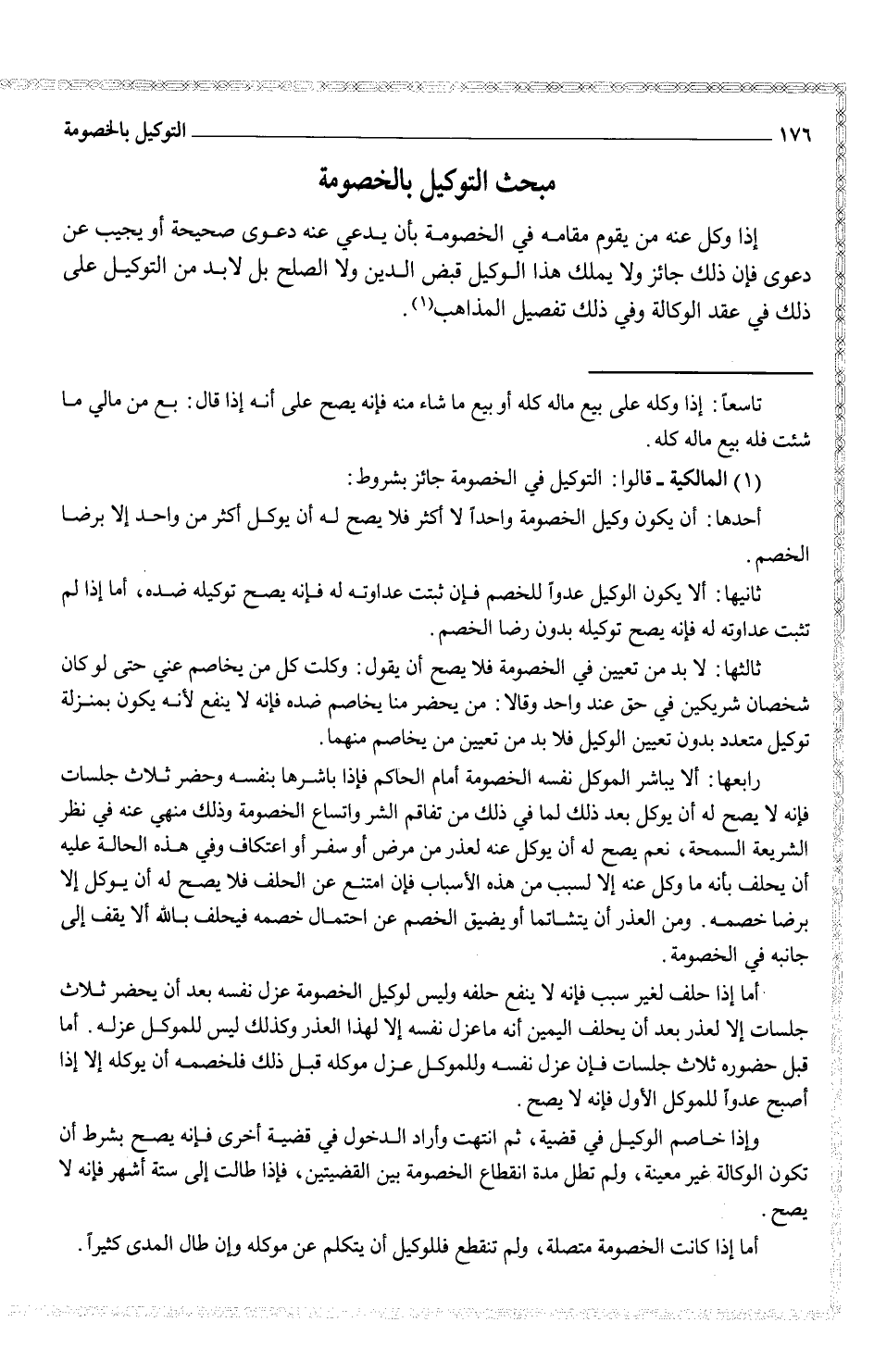 (¬1) (المالكية - قالوا: التوكيل في الخصومة جائز بشروط: