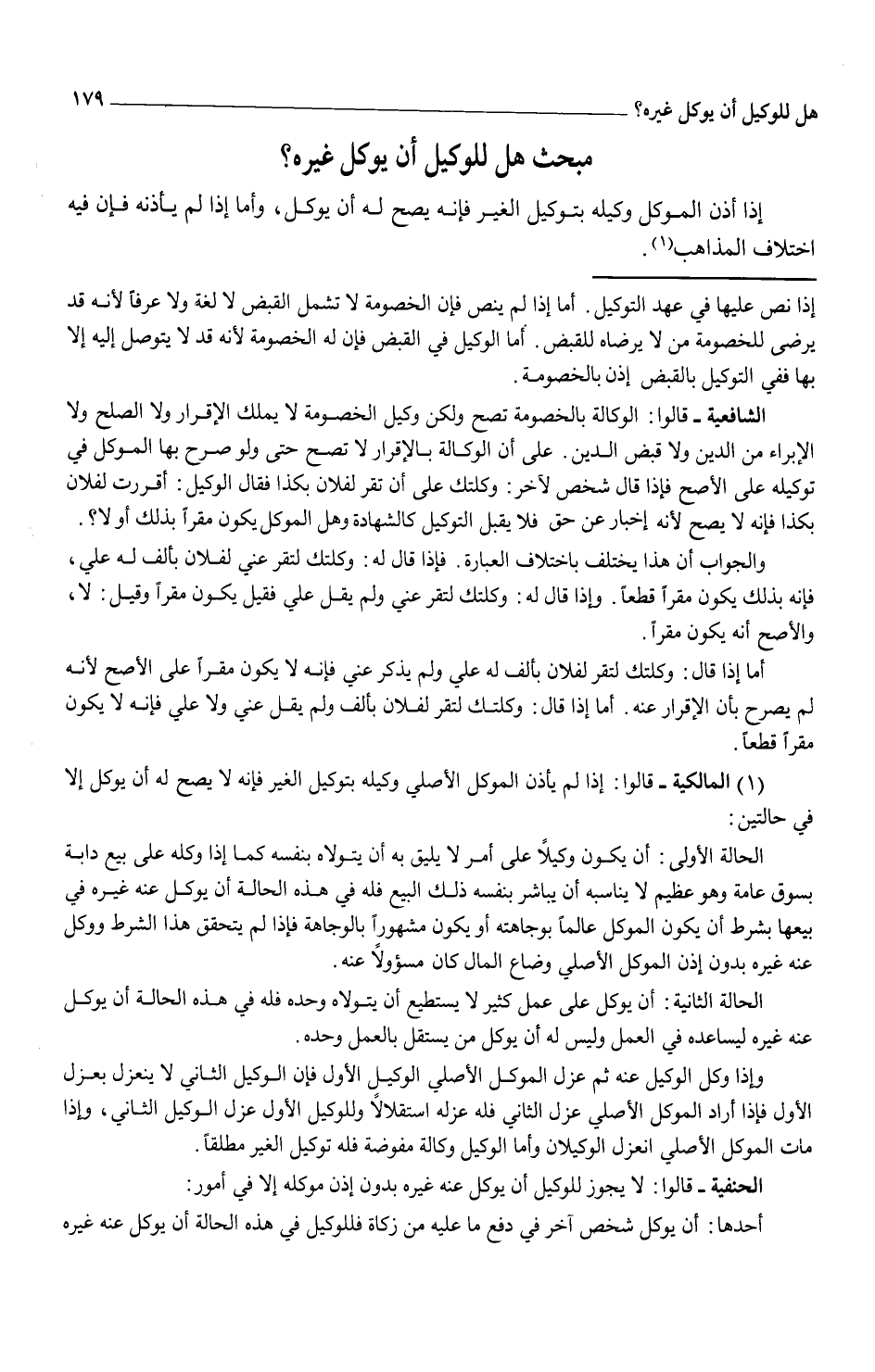 (¬1) (المالكية - قالوا: إذا لم يأذن الموكل الأصلي وكيله بتوكبل الغير فإنه لا يصح له أن يوكل إلا في حالتين: