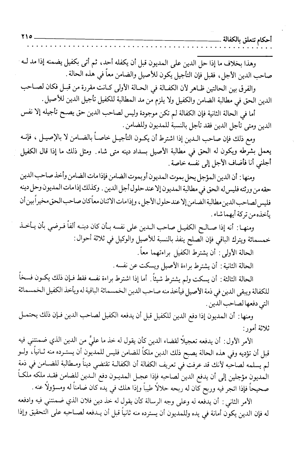 أما في الحالة الثانية فغن الكفالة لم تكن موجودة وليس لصاحب الدين حق يصح تأجيله إلا نفس الدين ومتى تأجل فقد تأجل بالنسبة للمديون وللضامن.