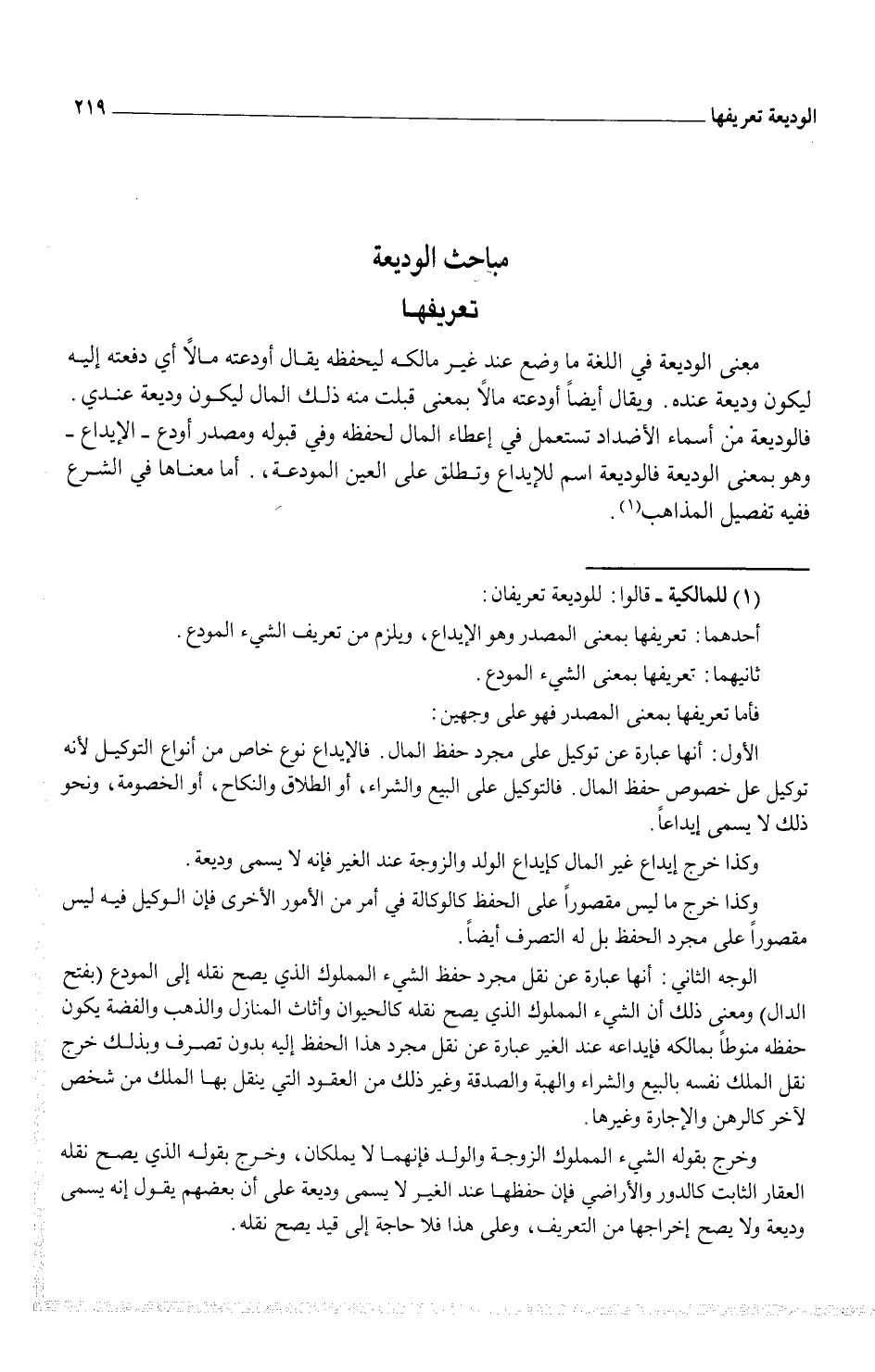 (¬1) (الماكية - قالوا: للوديعة تعريفان: