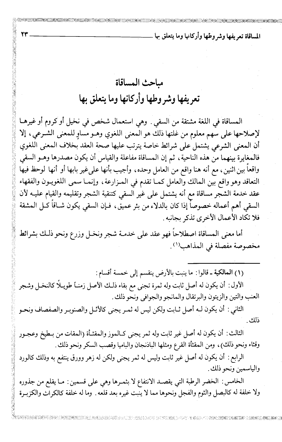 الأول: ان يكون له أصل ثابت وله ثمرة تجنى مع بقاء ذلك الأصل زمناً طويلاً كالنخل وشجر العنب والتين والبرتقال والمانجو ونحو ذلك.