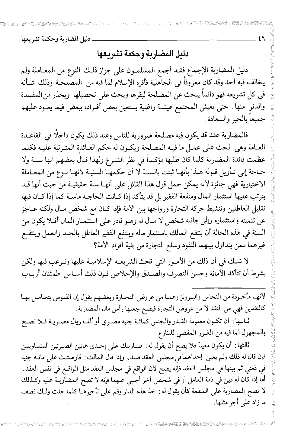 فالمضاربة عقد قد يكون فيه مصلحة ضرورية للناس وعند ذلك يكون داخلاً في القاعدة العامة وهي الحث على عمل فيه المصلحة ويكون له حكم الفائدة المترتبة عليه فكلنا عظمت فائدة المضاربة كلما كان طلبها مؤكداً في نظر الشرع ولهذا قال بعضهم انها سنة ولا حاجة إلى تأويل
