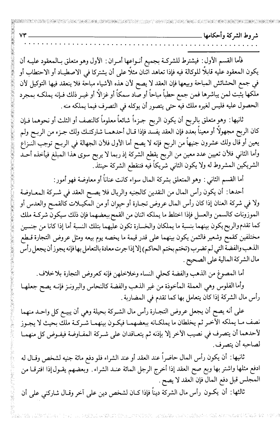 أما القسم الثاني: وهو متعلق بشركة المال سواء كانت عناناً أو معاوضة فهو أمور: