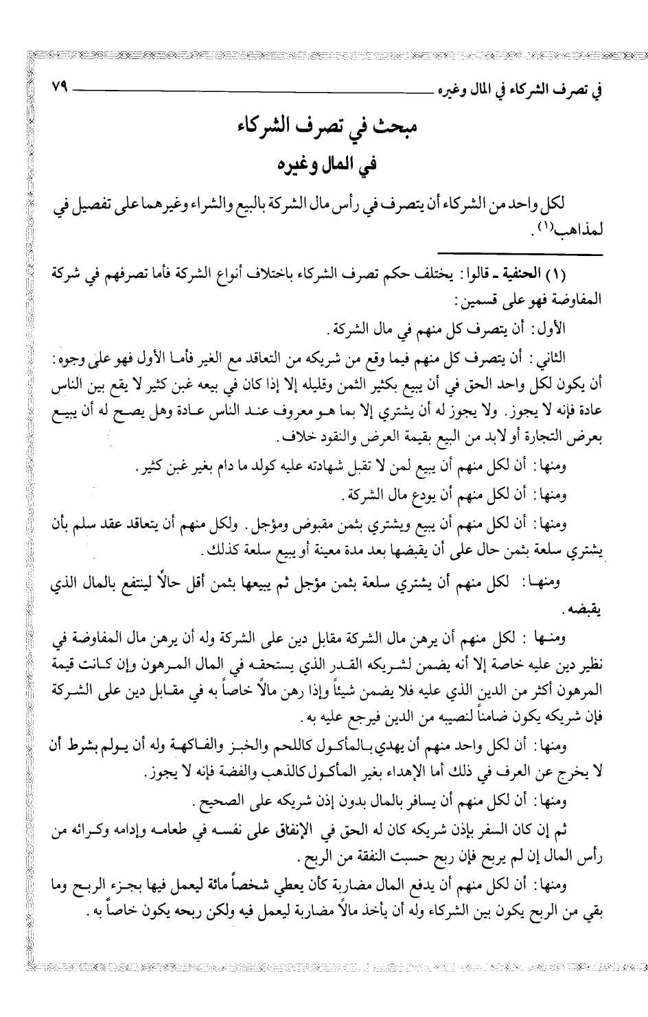 (¬1) الحنفية - قالوا حكم تصرف الشركاء باختلاف أنواع الشركة فأما تصرفهم في شركة المفاوضة فهو على قسمين:
