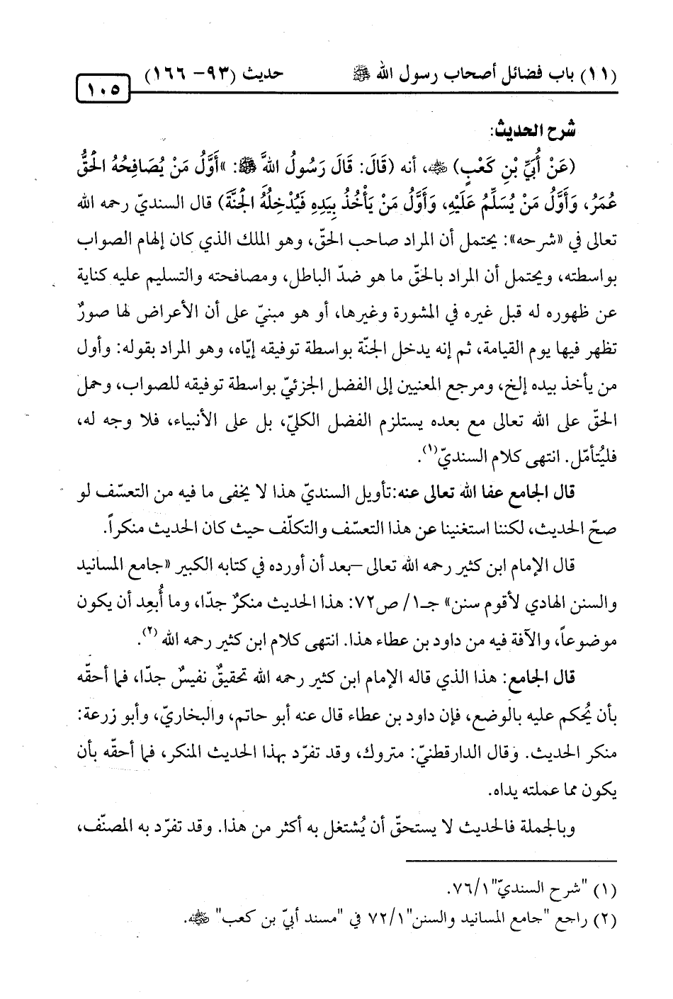 (¬2) راجع "جامع المسانيد والسنن" 1/ 72 في "مسند أبيّ بن كعب" -رضي الله عنه-.