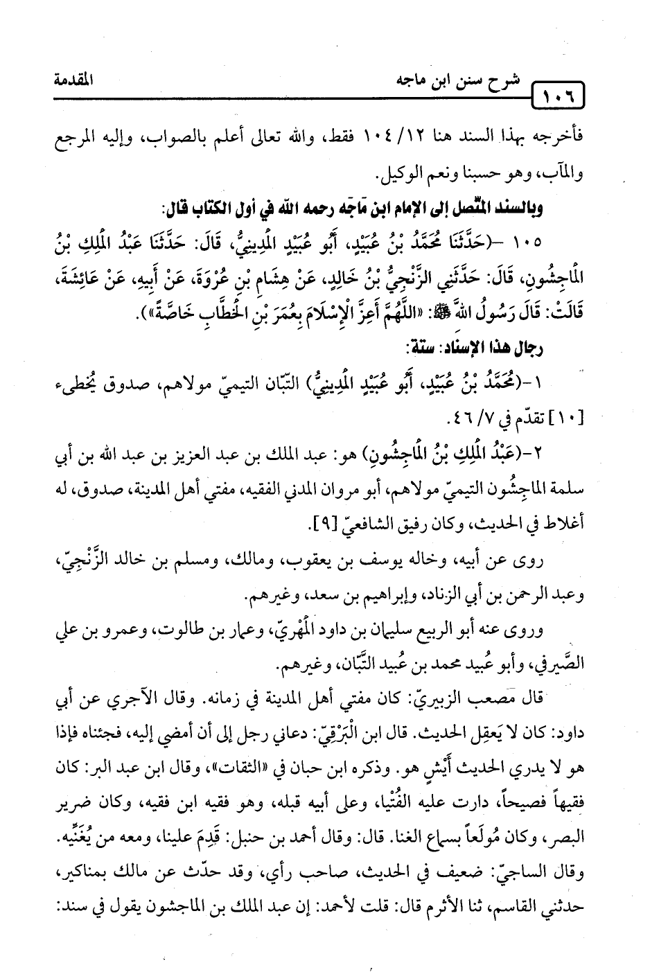 2 - (عَبْدُ الْمَلِكِ بْنُ الْمَاجِشُونِ) هو: عبد الملك بن عبد العزيز بن عبد الله بن أبي سلمة الماجِشُون التيميّ مولاهم، أَبو مروان المدني الفقيه، مفتي أهل المدينة، صدوق، له أغلاط في الحديث، وكان رفيق الشافعيّ [9].