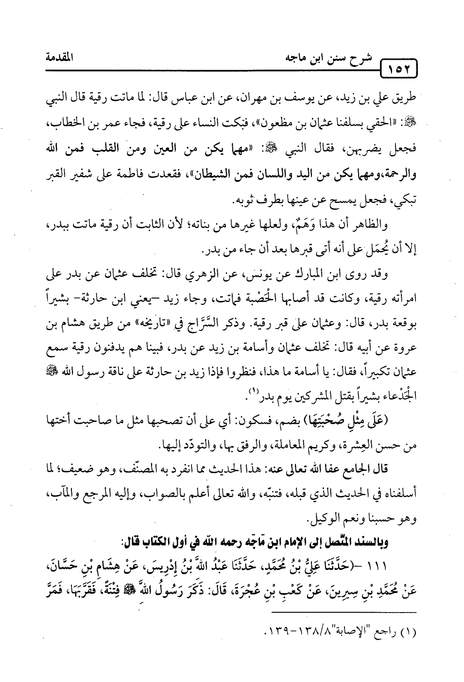 وبالسند المتّصل إلى الإمام ابن ماجه رحمه الله في أول الكتاب قال: