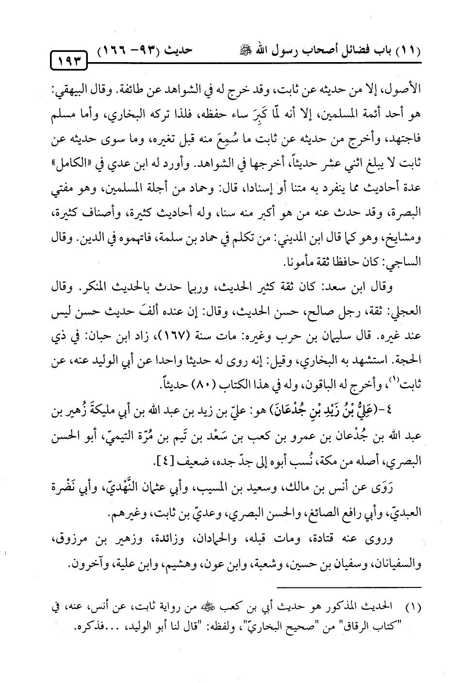 4 - (عَلِيُّ بْنُ زَيْدِ بْنِ جُدْعَانَ) هو: علي بن زيد بن عبد الله بن أبي مليكةَ زُهير بن عبد الله بن جُدْعان بن عمرو بن كعب بن سَعْد بن تَيم بن مُرّة التيميّ، أَبو الحسن البصري، أصله من مكة، نُسب أبوه إلى جدّ جده، ضعيف [4].