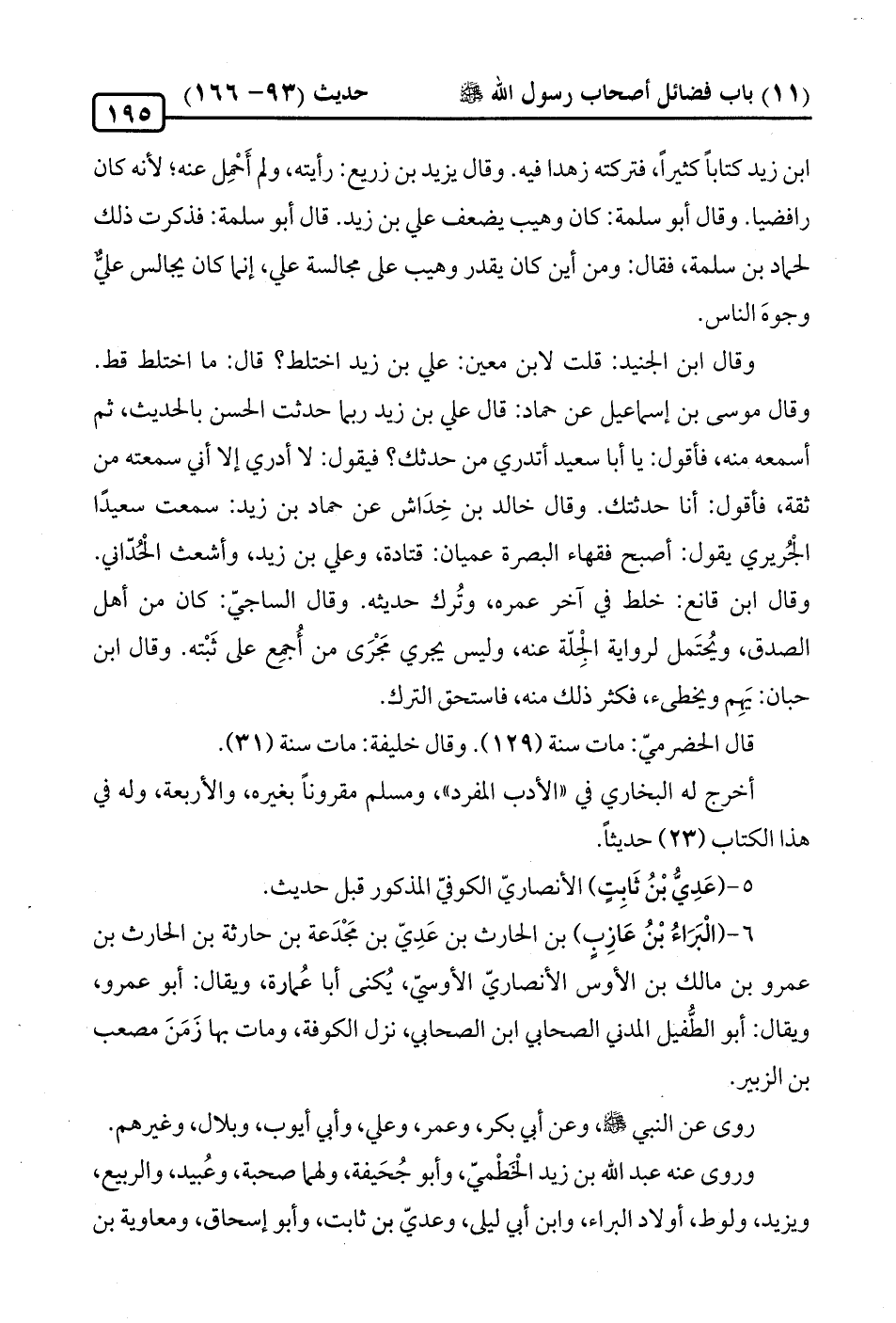 6 - (الْبَرَاءُ بْنُ عَازِبٍ) بن الحارث بن عَدِيّ بن مَجْدَعة بن حارثة بن الحارث بن عمرو بن مالك بن الأوس الأنصاريّ الأوسيّ، يُكنى أبا عُمارة، ويقال: أَبو عمرو، ويقال: أَبو الطُّفيل المدني الصحابي ابن الصحابي، نزل الكوفة، ومات بها زَمَنَ مصعب بن الزبير.