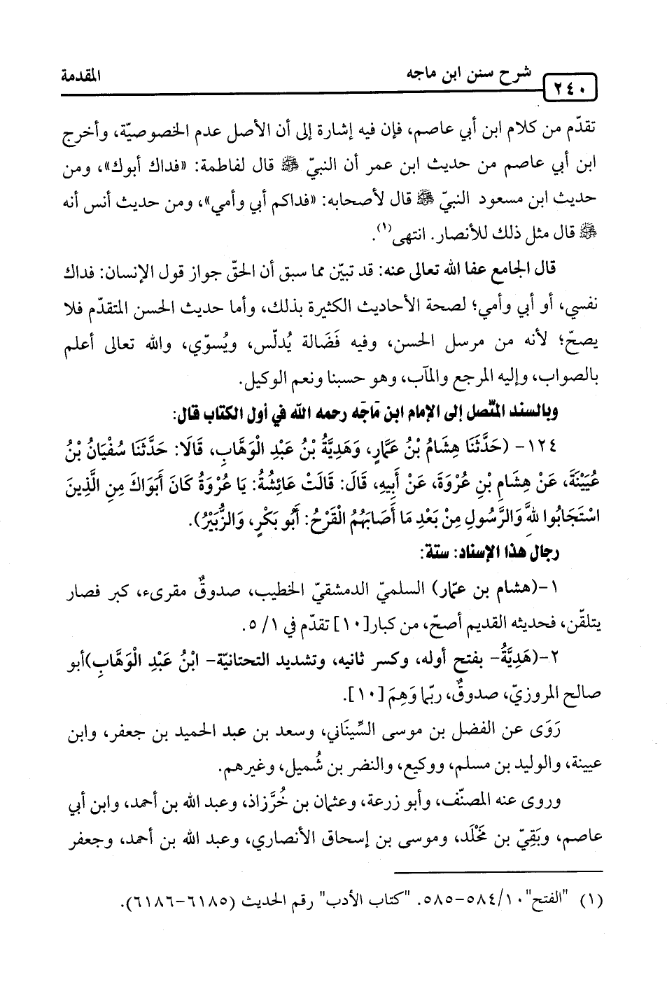 وبالسند المُتَّصل إلى الإمام ابن مَاجَه رحمه الله في أول الكتاب قال: