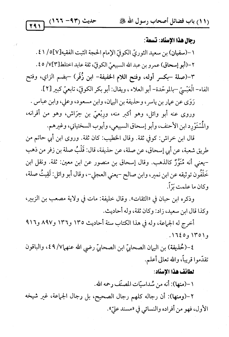 2 - (ومنها): أن رجاله كلهم رجال الصّحيح، بل رجال الجماعة، غير شيخه الأوّل، فهو من أفراده والنَّسائيّ في "مسند عليّ".