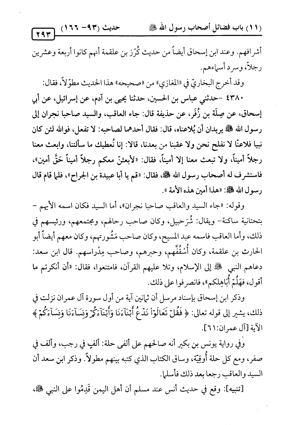 4385 - حدثني عبّاس بن الحسين، حَدَّثَنَا يحيى بن آدم، عن إسرائيل، عن أبي إسحاق، عن صِلَة بن زُفَر، عن حذيفة قال: جاء العاقب، والسيد صاحبا نجران إلى رسول الله -صلى الله عليه وسلم- يريدان أن يُلاعناه، قال: فقال أحدهما لصاحبه: لا تفعل، فوالله لئن كَان نبيا فلاعنّا لا نفلح نحن ولا عقبنا من بعدنا، قالا: إنا نُعطيك ما سألتنا، وابعث معنا رجلًا أمينًا، ولا تبعث معنا إِلَّا أمينًا، فقال: "لأبعثنّ معكم رجلًا أمينًا حَقَّ أمين"، فاستشرف له أصحاب رسول الله -صلى الله عليه وسلم-، فقال: "قم يا أبا عبيدة بن الجراح"، فلما قام قال رسول الله -صلى الله عليه وسلم-: "هذا أمين هذه الأمة".