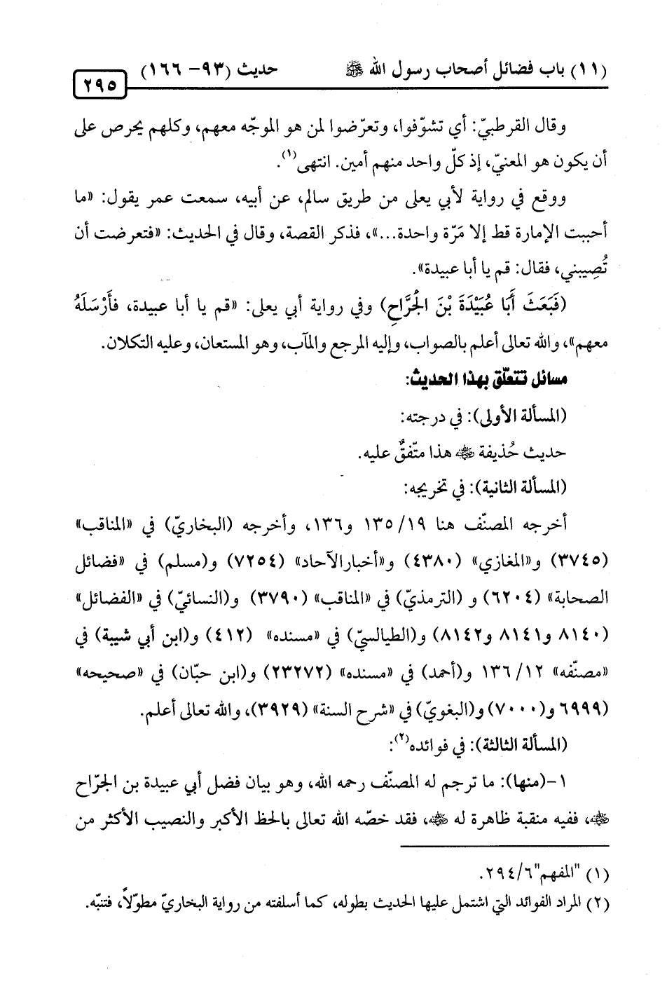 1 - (منها): ما ترجم له المصنّف رحمه الله، وهو بيان فضل أبي عبيدة بن الجرَّاح -رضي الله عنه-، ففيه منقبه ظاهرة له -رضي الله عنه- فقد خصّه الله تعالى بالحظ الأكبر والنصيب الأكثر من