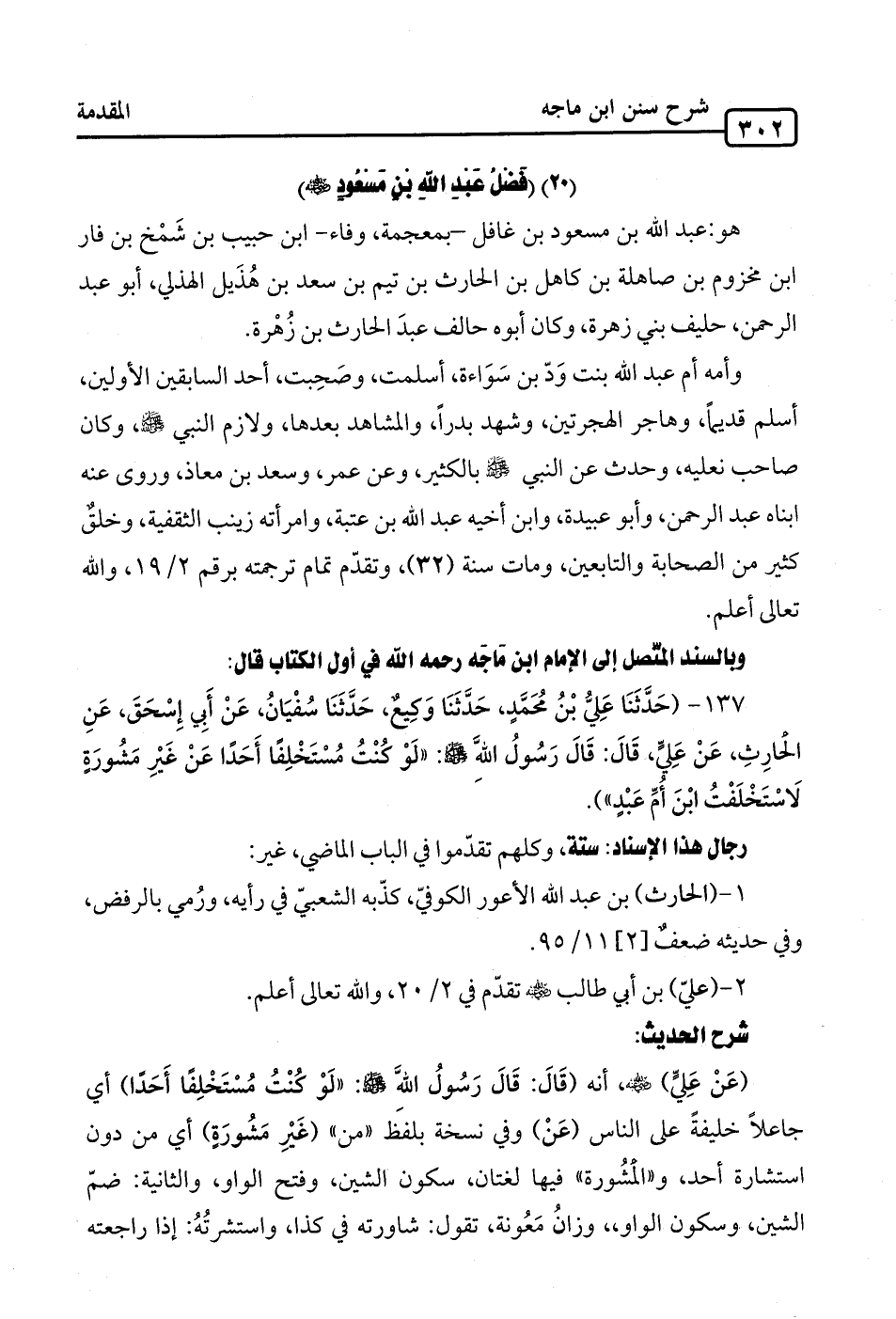 137 - (حَدَّثَنَا عَليُّ بْنُ مُحَمَّدٍ، حَدَّثَنَا وَكِيعٌ، حَدَّثَنَا سُفْيَانُ، عَنْ أَبِي إِسْحَقَ، عَنِ الحارِثِ، عَنْ عِليٍّ، قَالَ: قَالَ رَسُولُ الله -صلى الله عليه وسلم-: "لَوْ كُنْتُ مُسْتَخْلِفًا أَحَدًا عَنْ غَيْرِ مَشُورَةٍ لَاسْتَخْلَفْتُ ابْنَ أُمِّ عَبْدٍ").
