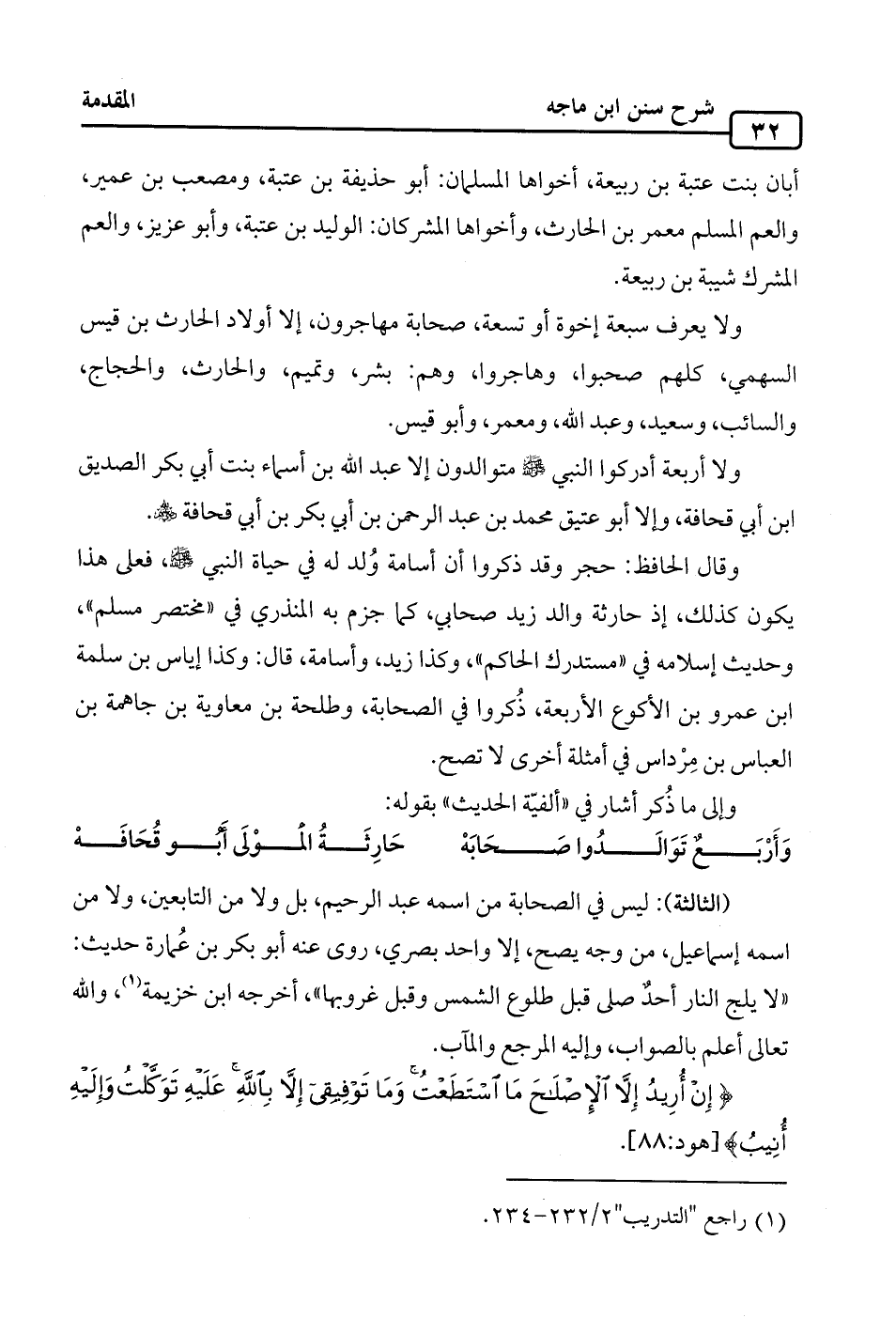وَأَرْبَعٌ تَوَالَدُوا صَحَابَهْ ... حَارِثَةُ الموْلَى أبو قُحَافَه