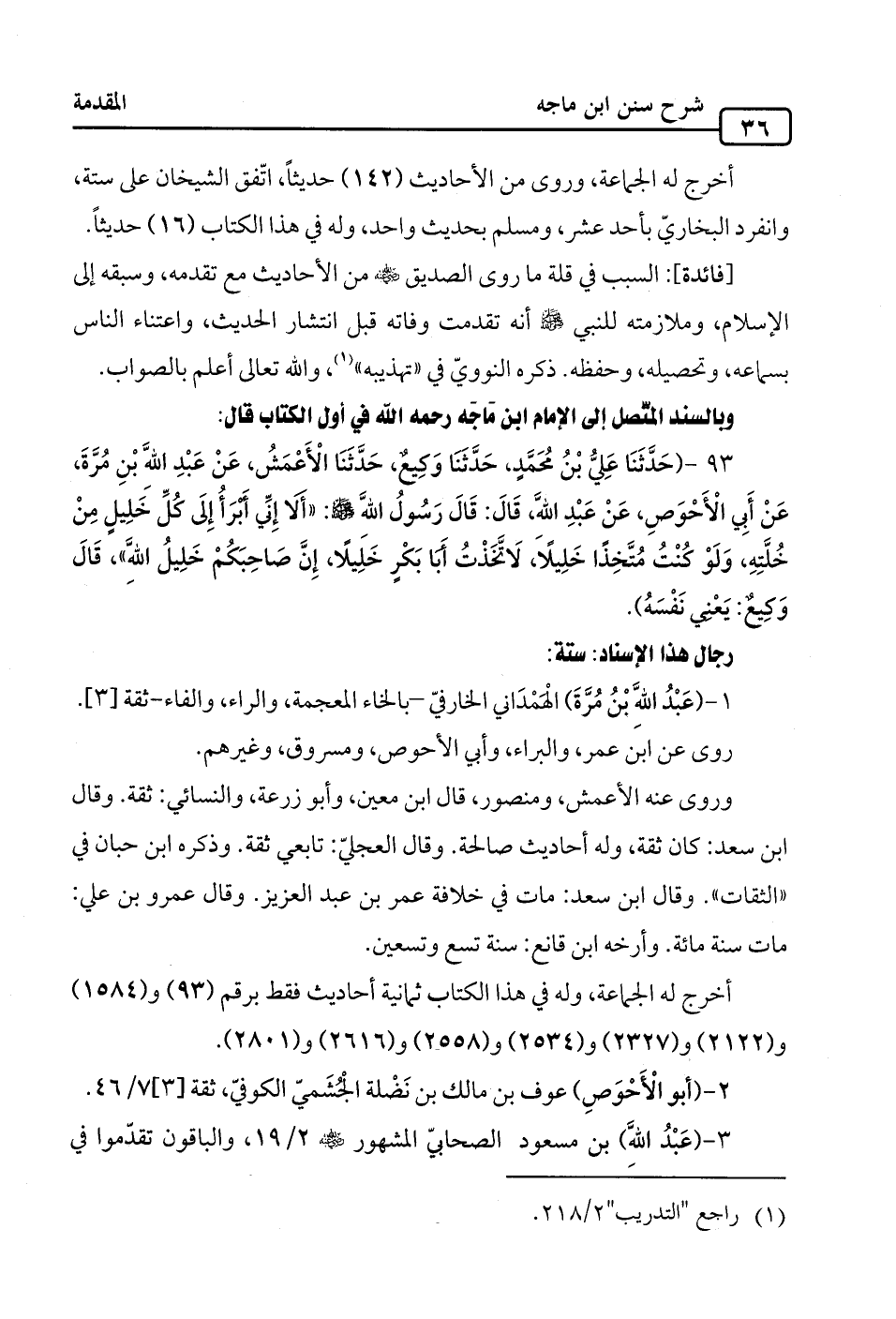 عَنْ أَبِي الْأَحْوَصِ، عَنْ عَبْدِ الله، قَالَ: قَالَ رَسُولُ الله -صلى الله عليه وسلم-: "أَلا إِنِّي أبرَأُ إِلَى كلِّ خَلِيلٍ مِنْ خُلَّتِهِ، وَلَوْ كنْتُ مُتَّخِذًا خَلِيلًا، لَاتَّخَذْتُ أبا بَكْرٍ خَلَيلًا، إِنَّ صَاحِبَكُمْ خَلِيلُ الله"، قَالَ وَكِيعٌ: يَعْني نَفْسَهُ).