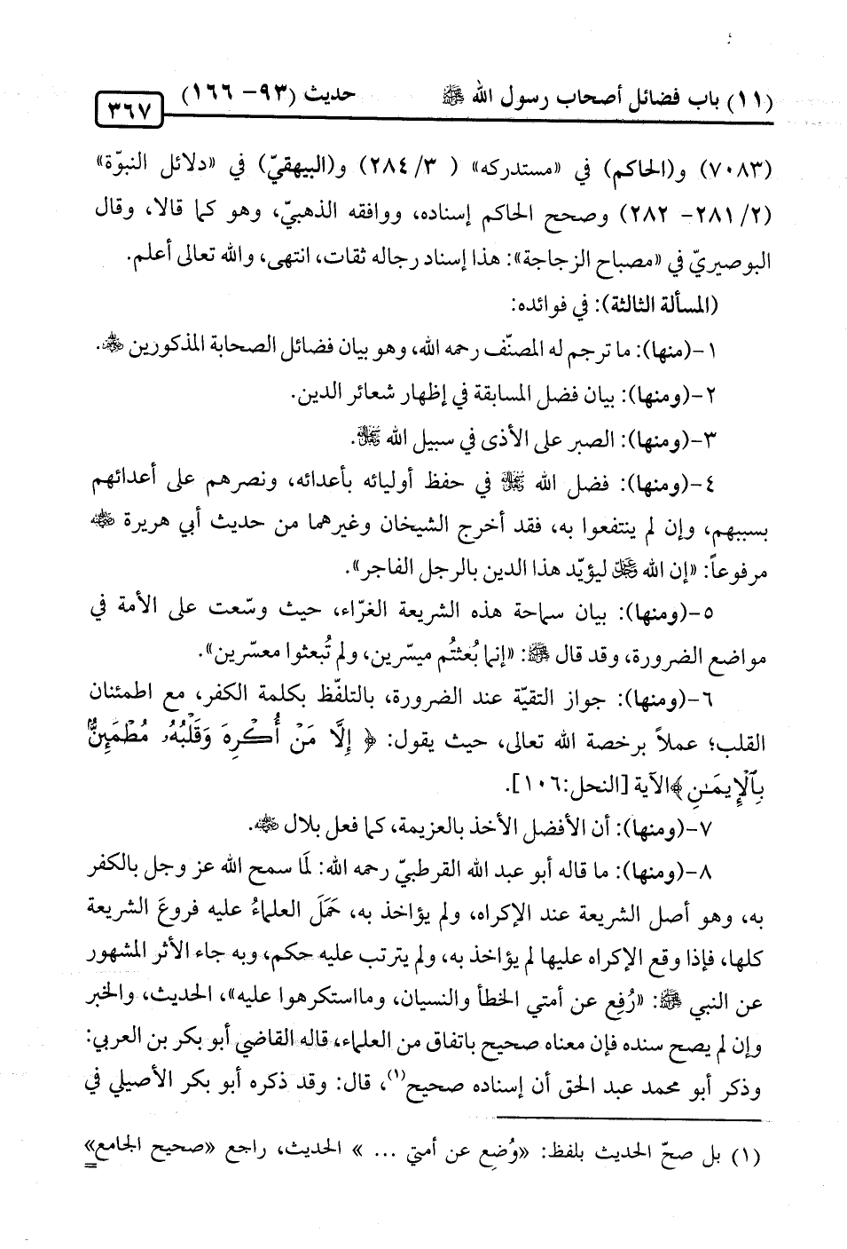 1 - (منها): ما ترجم له المصنّف رحمه الله، وهو بيان فضائل الصّحابة المذكورين -رضي الله عنهم-.