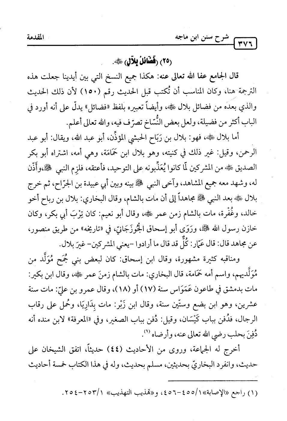 قال الجامع عفا الله تعالى عنه: هكذا جميع النسخ الّتي بين أيدينا جعلت هذه الترجمة هنا، وكان المناسب أن تُكتب قبل الحديث رقم (150) لأن ذلك الحديث والذي بعده من فضائل بلال -رضي الله عنه-، وأيضًا تعبيره بلفظ "فضائل" يدلُّ على أنه أورد في الباب أكثر من فضيلة، ولعلّ بعض النُّساخ تصرّف فيه، والله تعالى أعلم.