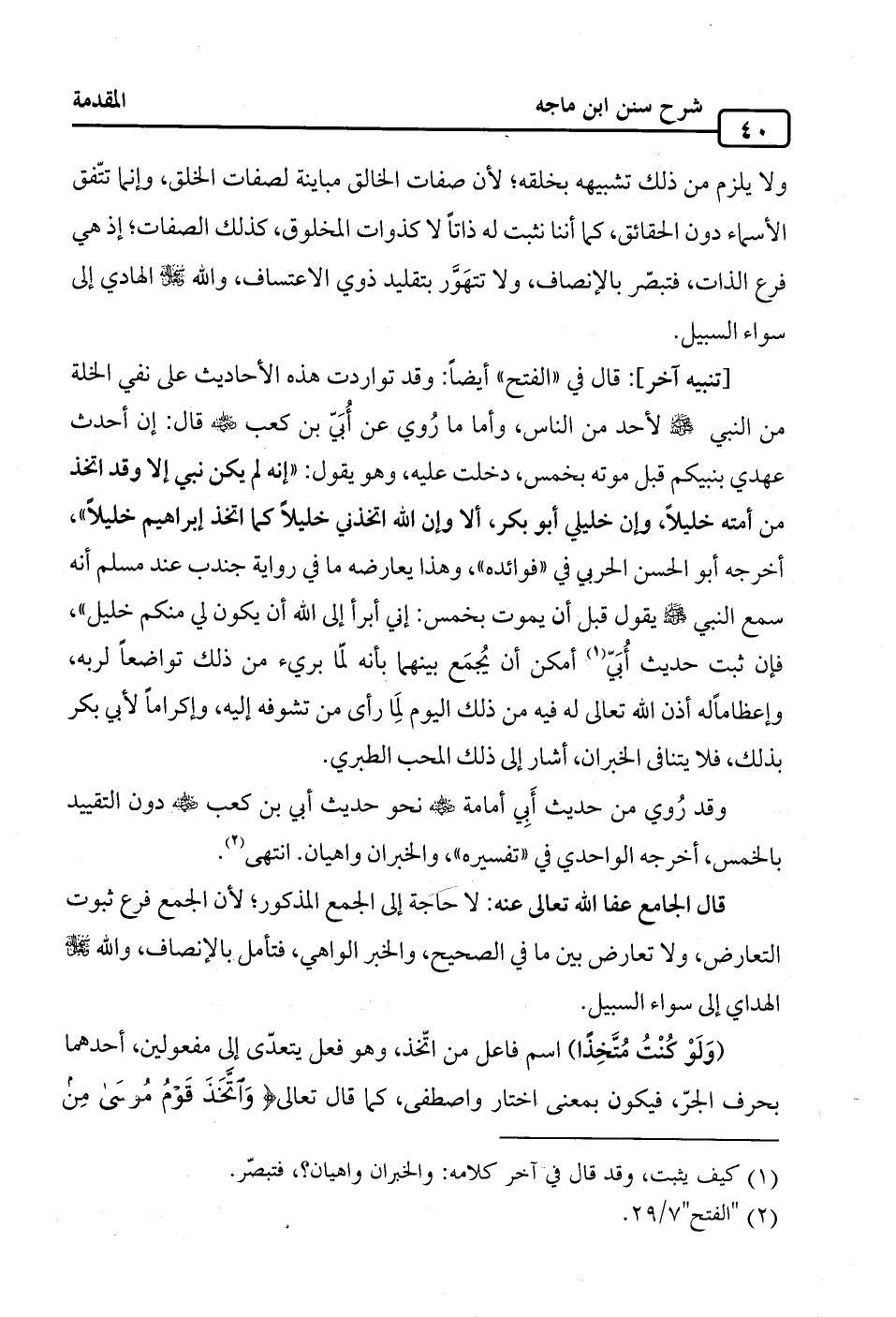 [تنبيه آخر]: قال في "الفتح" أيضًا: وقد تواردت هذه الأحاديث على نفي الخلة من النبي -صلى الله عليه وسلم- لأحد من الناس، وأما ما رُوي عن أُبَيّ بن كعب -رضي الله عنه- قال: إن أحدث عهدي بنبيكم قبل موته بخمس، دخلت عليه، وهو يقول: "إنه لم يكن نبي إلا وقد اتخذ من أمته خليلًا، وإن خليلي أبو بكر، ألا وإن الله اتخذني خليلًا كما اتخذ إبراهيم خليلًا"، أخرجه أبو الحسن الحربي في "فوائده"، وهذا يعارضه ما في رواية جندب عند مسلم أنه سمع النبي -صلى الله عليه وسلم- يقول قبل أن يموت بخمس: إني أبرأ إلى الله أن يكون لي منكم خليل"، فإن ثبت حديث أُبَيّ (¬1) أمكن أن يُجمَع بينهما بأنه لمّا بريء من ذلك تواضعًا لربه، وإعظامًا له أذن الله تعالى له فيه من ذلك اليوم لِمَا رأى من تشوفه إليه، وإكرامًا لأبي بكر بذلك، فلا يتنافى الخبران، أشار إلى ذلك المحب الطبري.