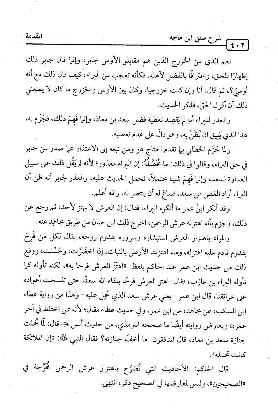 قال الحاكم:. الأحاديث الّتي تُصَرِّح باهتزاز عرش الرّحمن مُخَرَّجة في "الصحيحين"، وليس لمعارضها في الصّحيح ذكر، انتهى.