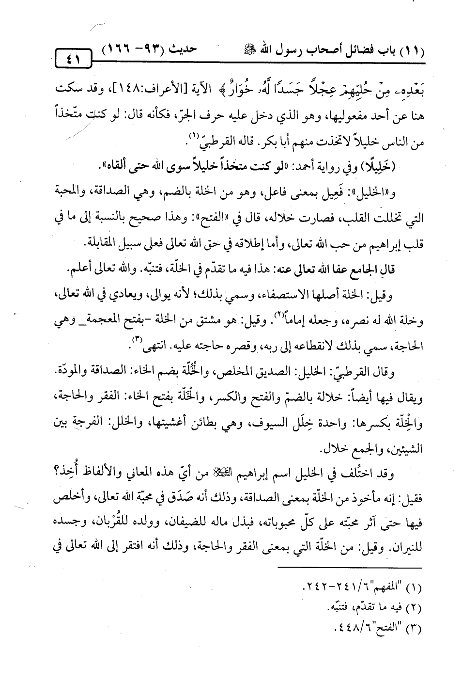 وقيل: الخلة أصلها الاستصفاء، وسمي بذلك؛ لأنه يوالى، ويعادي في الله تعالى، وخلة الله له نصره، وجعله إمامًا (¬2). وقيل: هو مشتق من الخلة -بفتح المعجمة - وهي الحاجة، سمي بذلك لانقطاعه إلى ربه، وقصره حاجته عليه. انتهى (¬3).