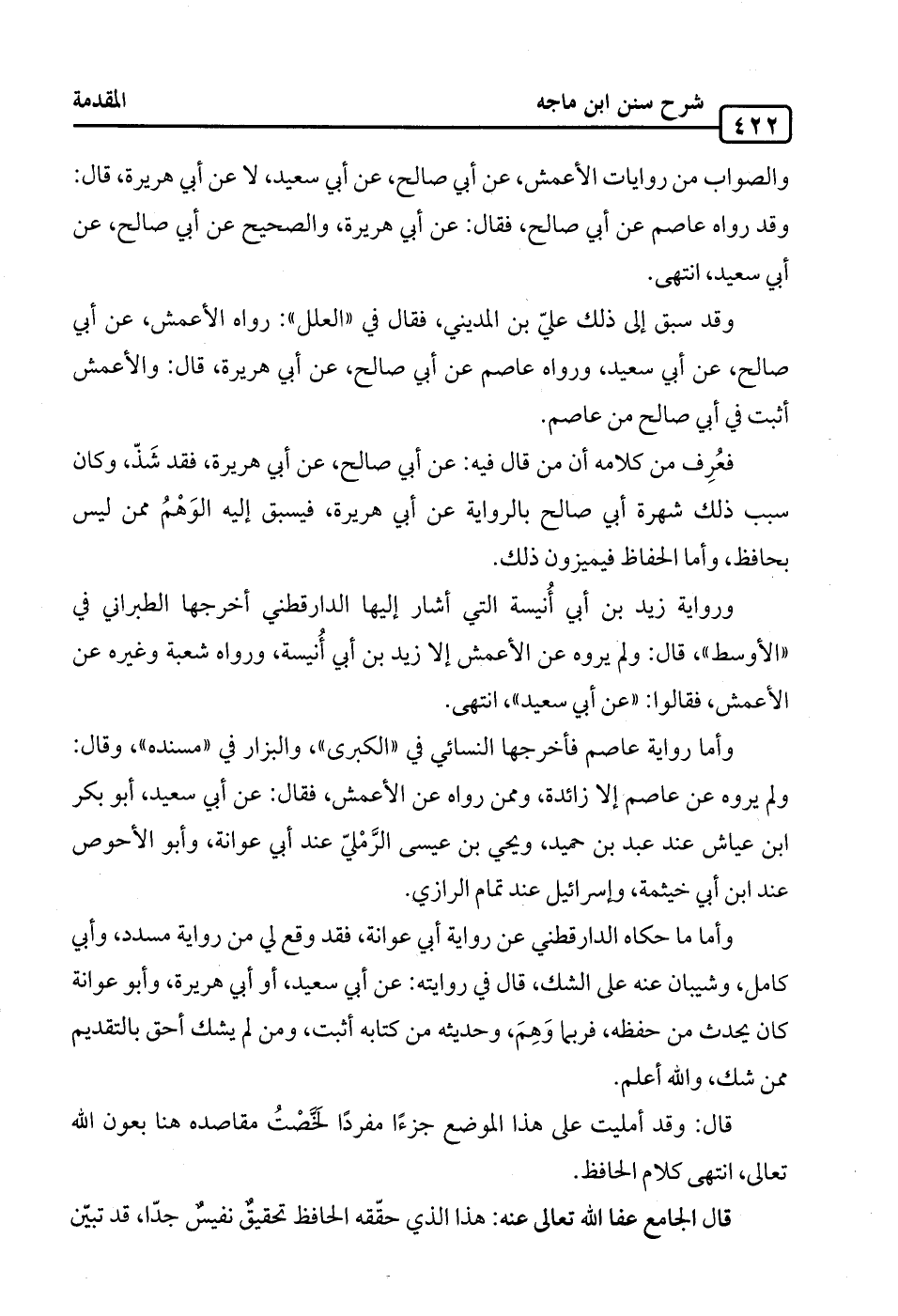 والصواب من روايات الأعمش، عن أبي صالح، عن أبي سعيد، لا عن أبي هريرة، قال: وقد رواه عاصم عن أبي صالح، فقال: عن أبي هريرة، والصّحيح عن أبي صالح، عن أبي سعيد، انتهى.